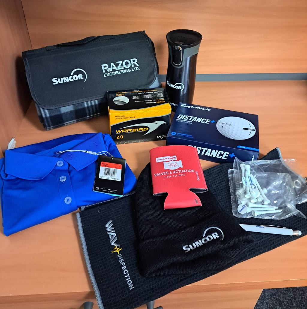 24 golf balls, tees, markers, golf towel, Conitigo mug, picnic blanket, Nike Ladies Dry Fit golf shirt size Large, toque