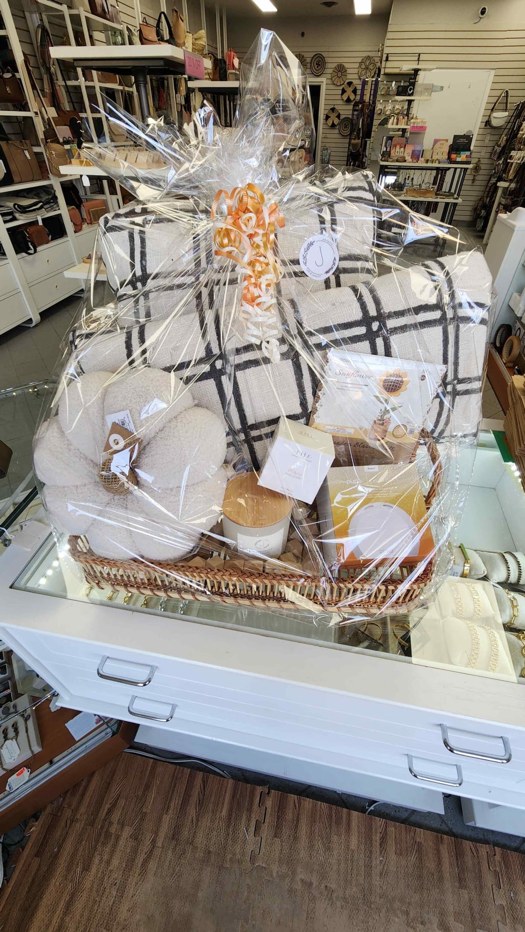 Two Throw Pillows, Signature Johnson's Candle, Honey Heel Glaze, Pura Smart Fragrance Diffuser Set, Ratan Basket