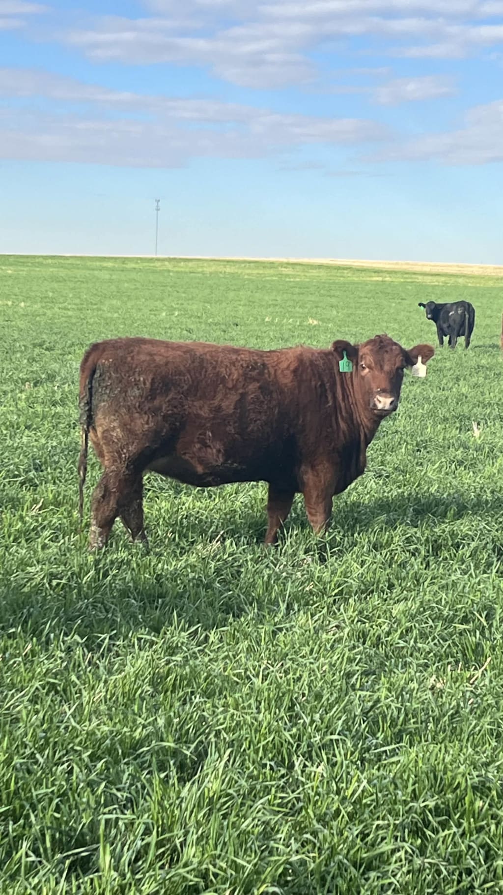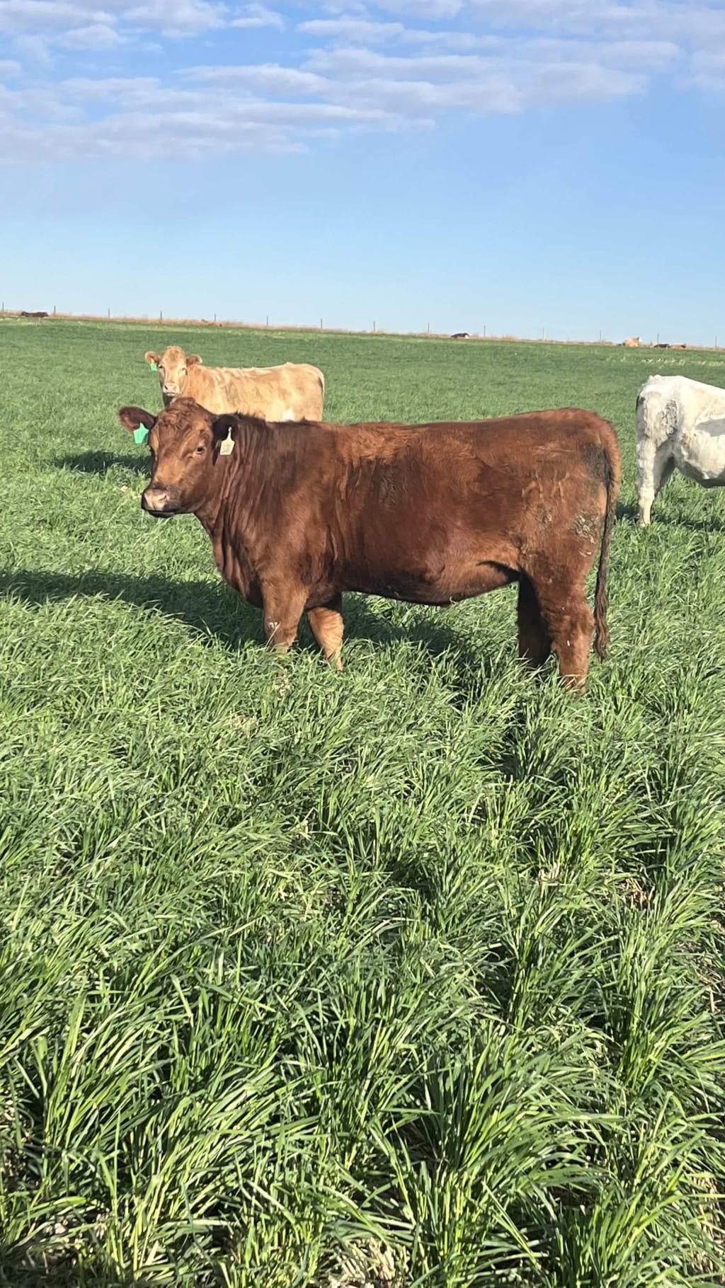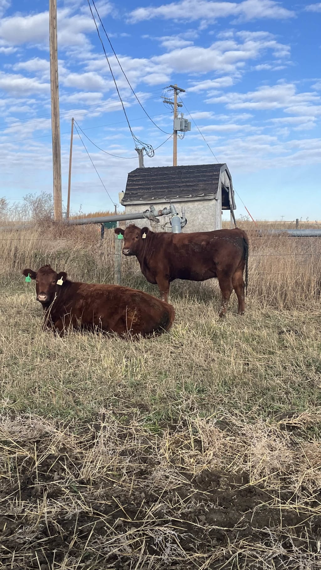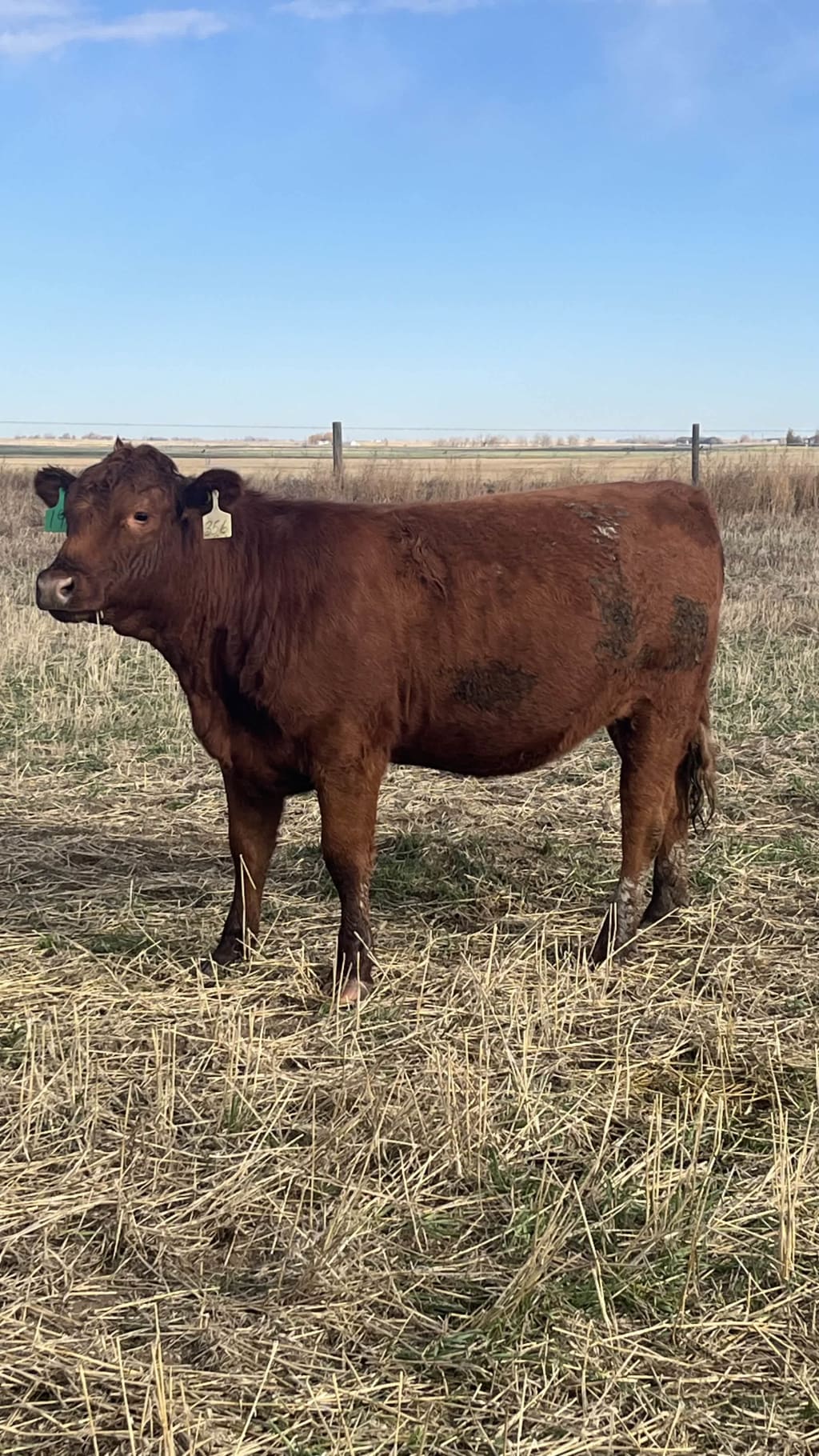 BLUE HORIZON 25 Excellent Red Angus Hfrs Bred to low birth wt 75lb Red Angus Bull Bull in June 1st. Out August 1st Full Herd Health Program