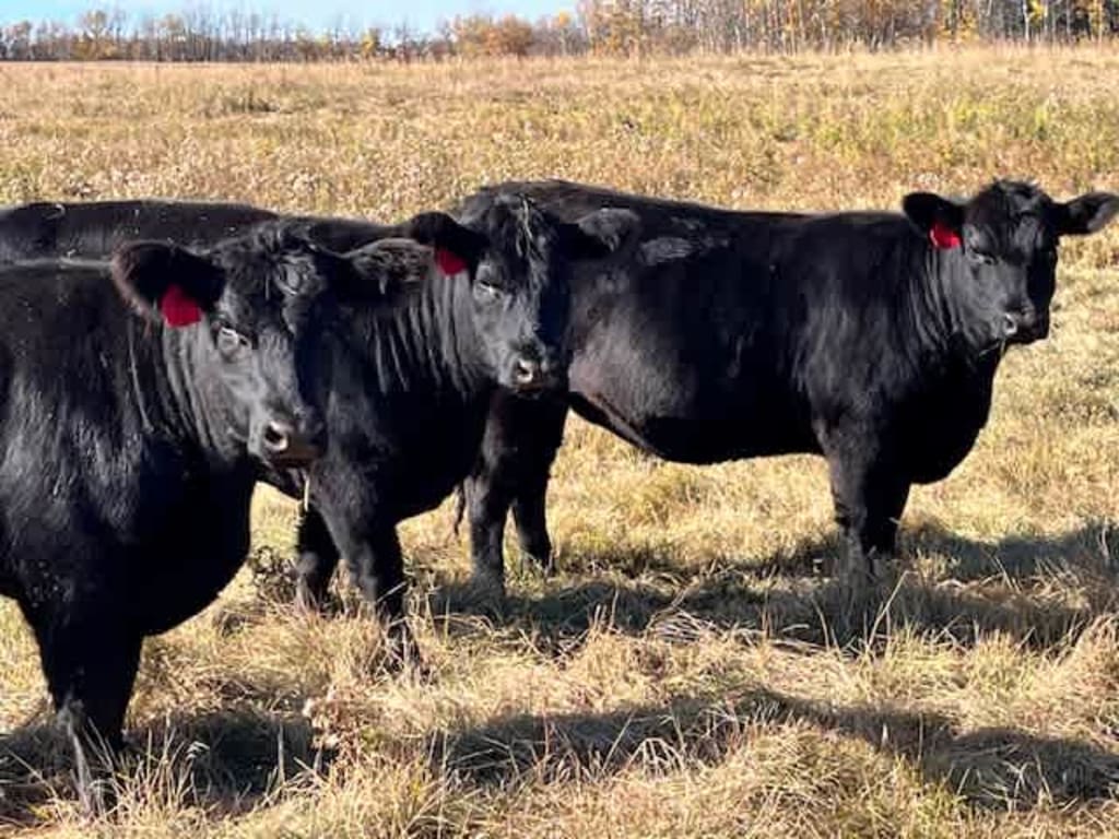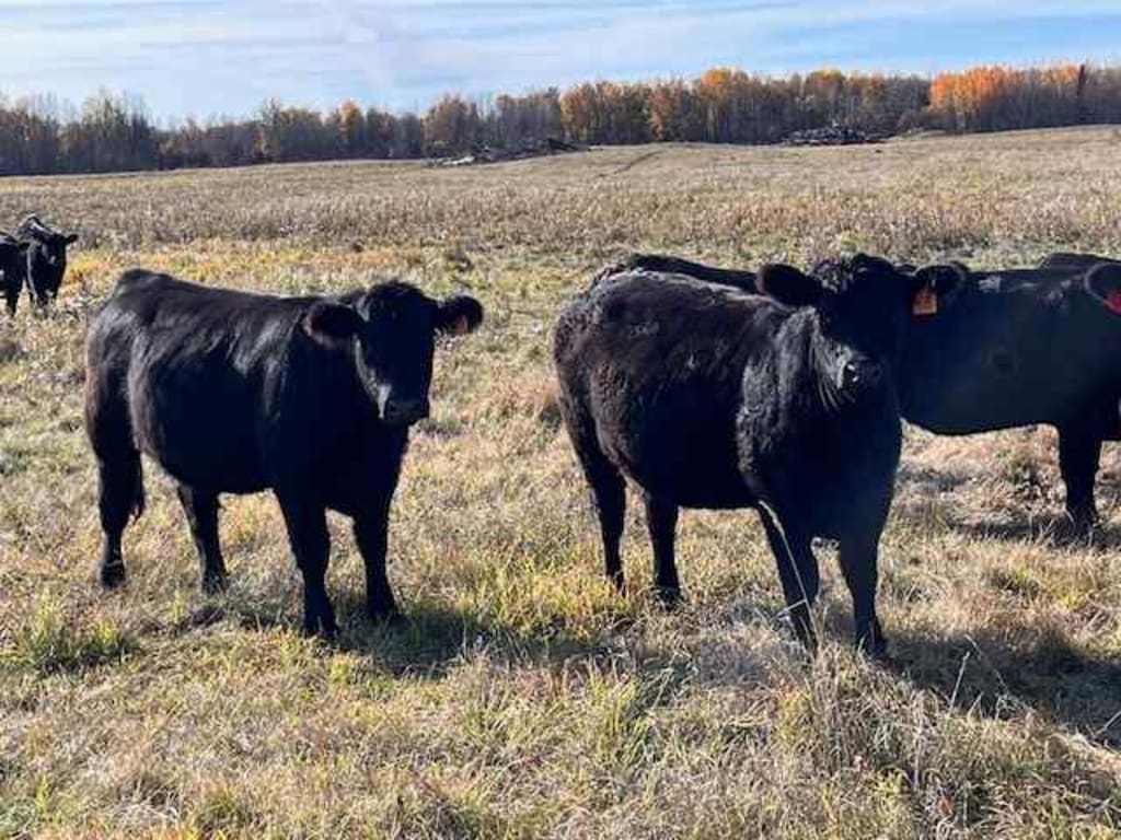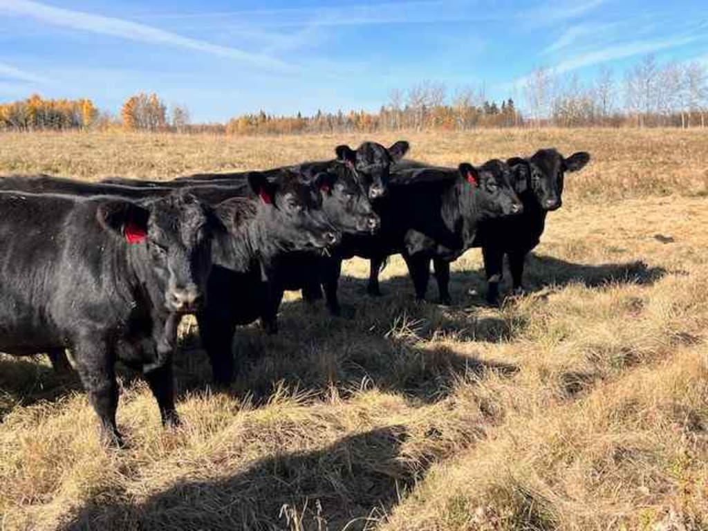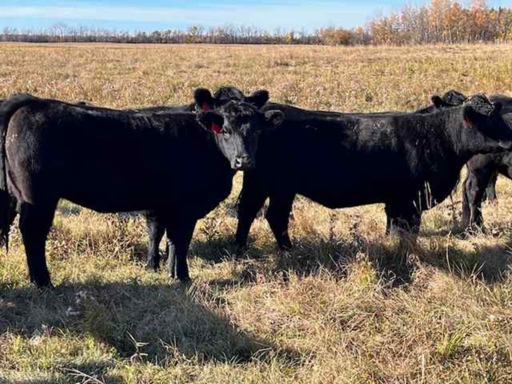 Summary CIRCLE C FARMING 120 Extraordinary Blk Angus X Maine Anjou Hfrs, NVB Bred to Low birth wt proven Red Angus Bulls. Bulls in June 20th. Out Aug 18th Full Herd Health Program; They were boosted with Bovasheild Gold One Shot and Ultra Choice 8. In spring Feed notes: These hfrs were wintered on hay and 2 lbs of oats. Never pushed. Mid-May were turned to pasture and were grazing till the end of Oct