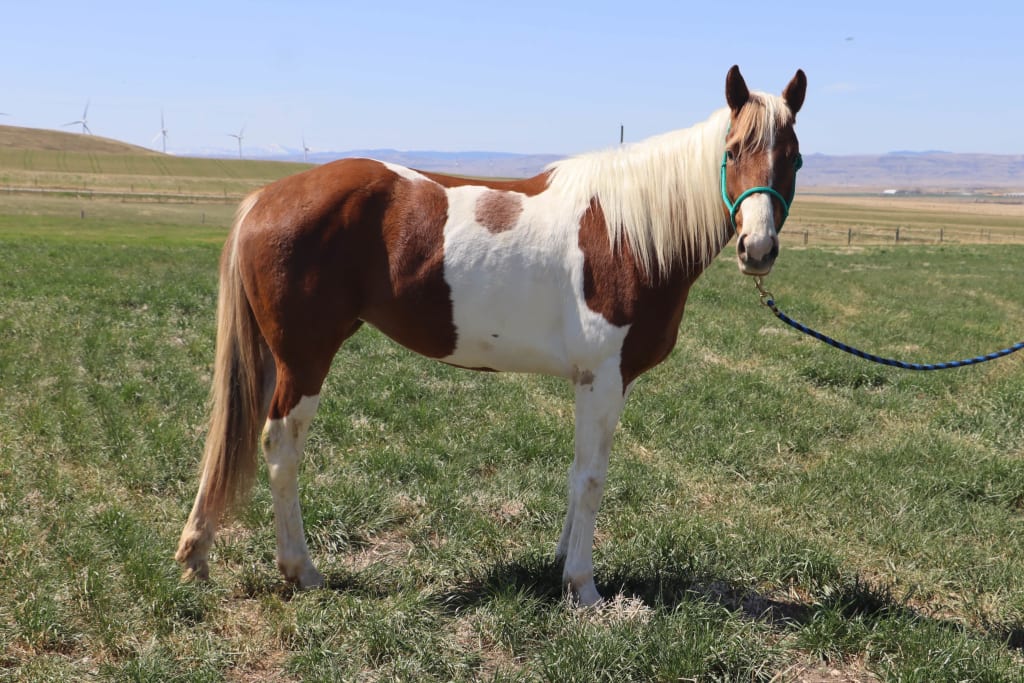 Misty May is 15.2 hh and has a very sweet, friendly personality. She is saddle broke and willing to learn. She is easy to catch and has many hours of riding on her, from trail riding to arena work. May has good and respectful groundwork. She can be energetic while being rode and needs a confident rider. Good for farrier and stands tied.
