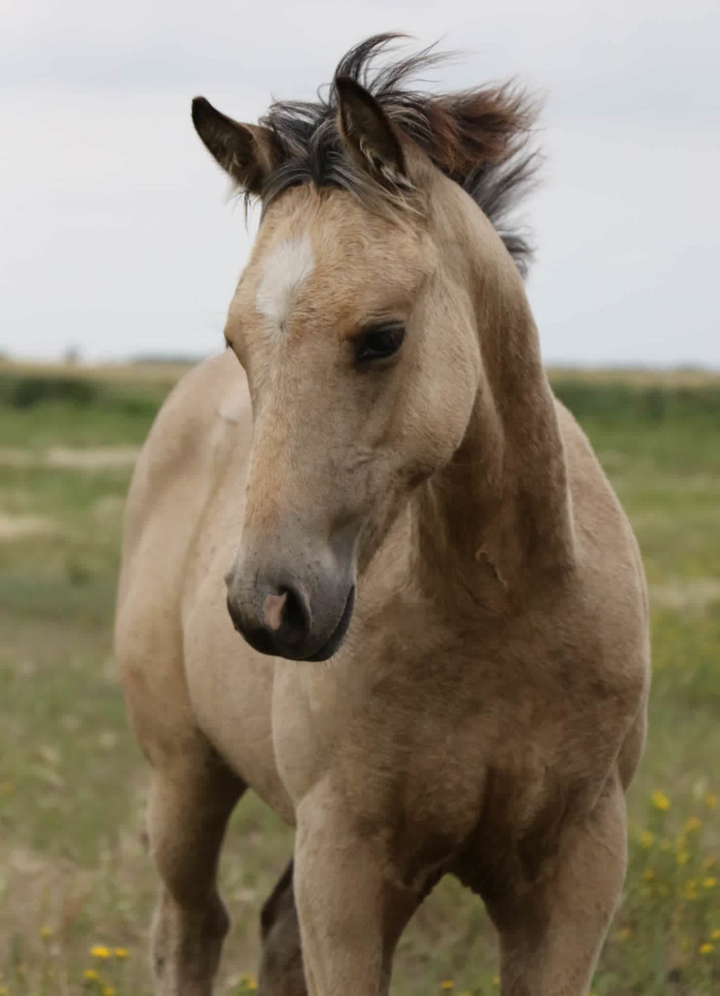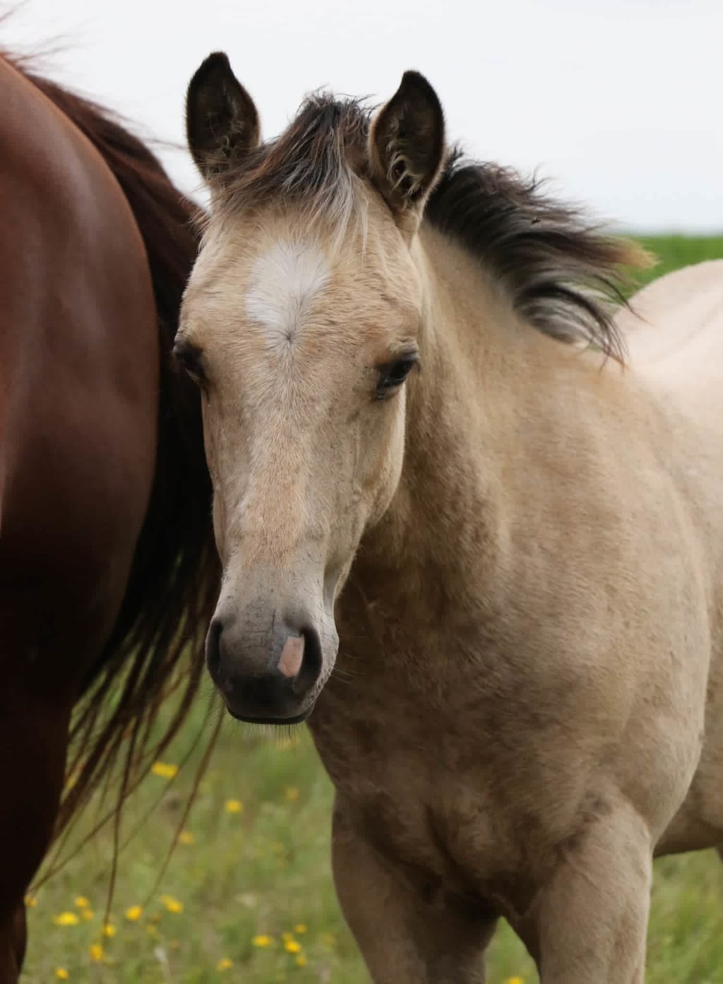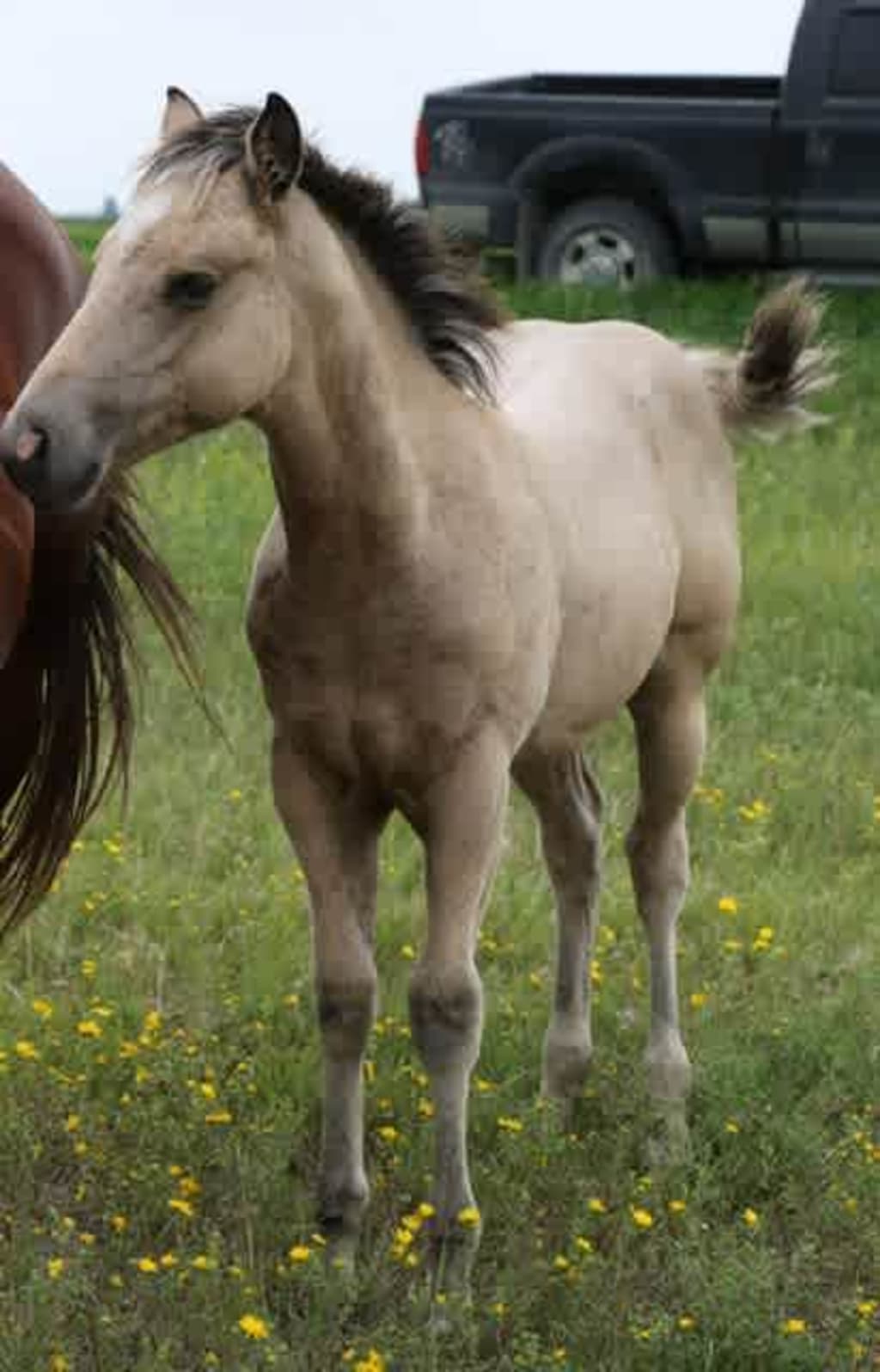 Here is a buckskin filly that is sure to catch your eye and is sure to excel in many directions. Peppy San Sun Frost aka Cooper has been producing great minded foals for us that have excelled in the barrel and roping pen as well as solid ranch and family mounts. This fillies dam is a DQH Mia Rooster Two aka Jagger daughter. Jagger has been making a solid name for himself as the sire of well built good minded babies that do well in many directions. He is a money earner himself before an injury at the trainers sent him to the breeding pasture. His sons and daughters have picked up the gauntlet and carried on in his name. A son was the 2024 MHSRA horse of the year and he has other sons and daughters excelling in the team roping and breakaway roping all across Canada and the States. This filly is built right and has the proven genetics to be a future contender in any arena you send her to.All of our Prospects will be eligible to be paid into the Legends of the Prairie Rope and Barrel Horse Futurity. For More Info contact Donna at hm-204-529-2515 cell-204-245-0655 www.decossequarterhorses.com.