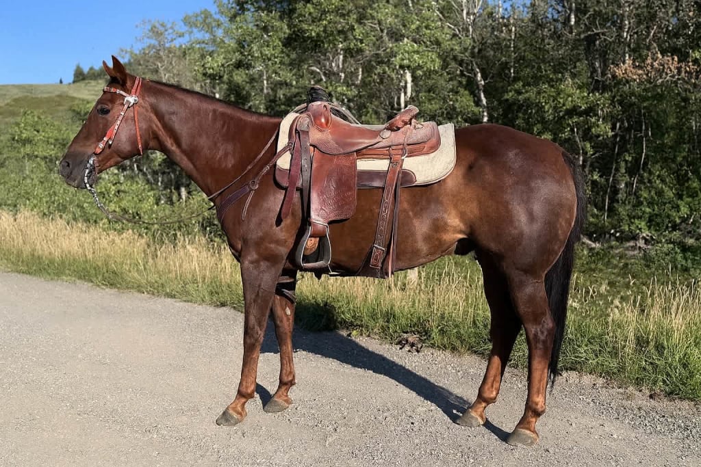Javier is a 9 year old gelding, standing approx. 15hh. He has been used at brandings, moving and sorting cows and bulls. He has a quiet disposition and is good to be around other horses. Good to trailer and stands good for farrier. His one quirk is he can be cinchy with time off. Once he is warmed up he's good to go. With that being said and experienced rider is recommended.