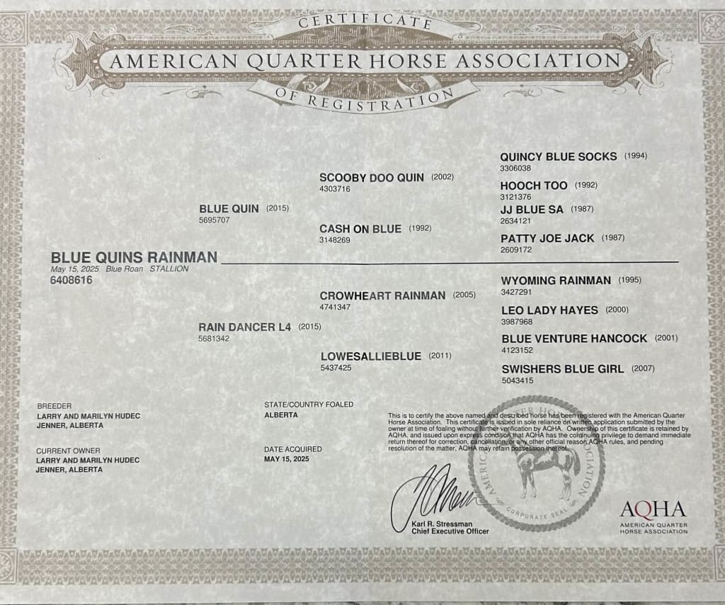 The dam of this stout fella came from L4 Quarter Horses in Mississippi (that was a fun trip). If you're looking for size and power- heres your guy! He is sired by BLUE QUIN who puts a sweet disposition in his offspring.