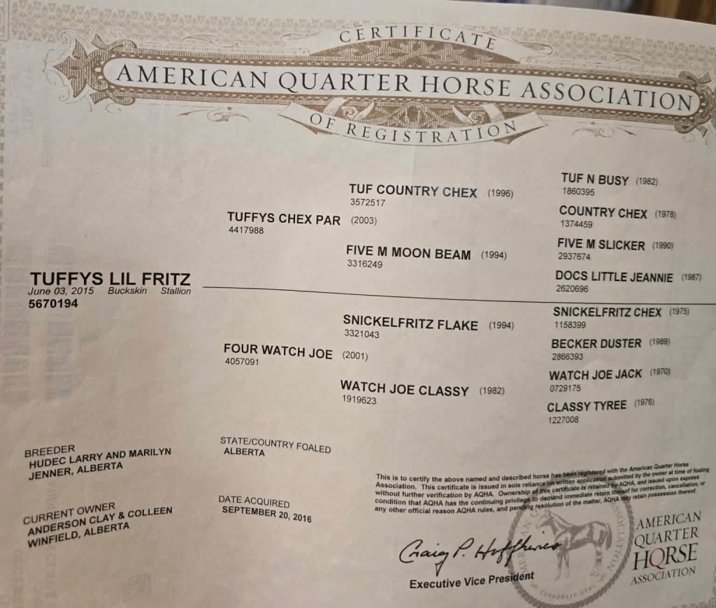 Very gentle filly tha is very correct in every way. Pretty little head and a big hip this filly will be very trainable. Very nice prospect. Note registration papers attached are the filly's Dam and Sire.