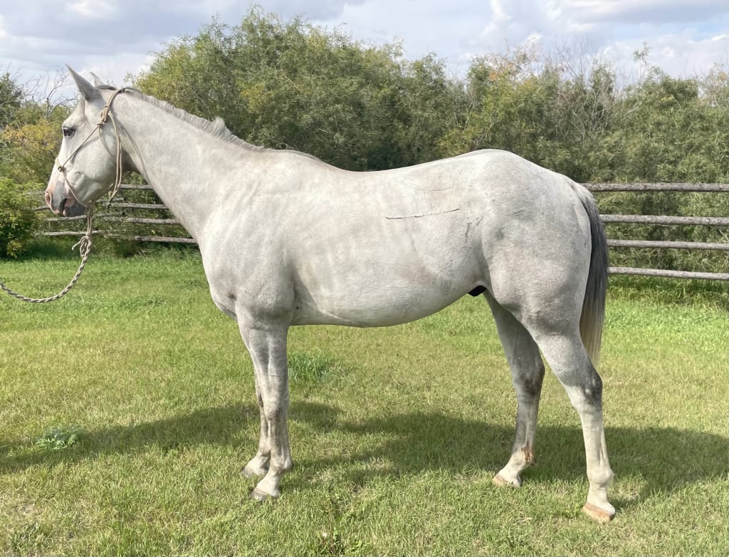 Iron Man is an 8 year old registered gelding that measures 15hh. He's been used for ranch work and rode through the river, hills, bush, creek and bog. He's good to catch, trim, tack up, load and haul. Iron Man is green broke and best suited for an experienced and confident rider. More photos and videos on Doyle Watson Horse & Tack facebook page. Please call 306-901-8090 or 306-815-7240 for more information.