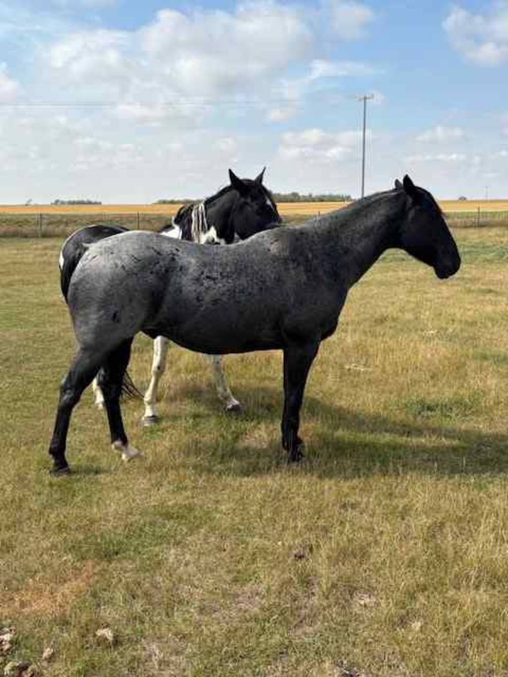 Blue roan gelding. Previous owner roped and doctored off of him. I have owned him for 2 years and used him for checking cows and fences, and occasionally gathering. I don't have enough work to keep him busy, and he's had enough time off around here.
