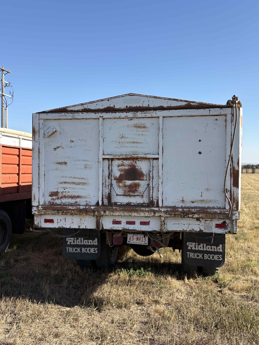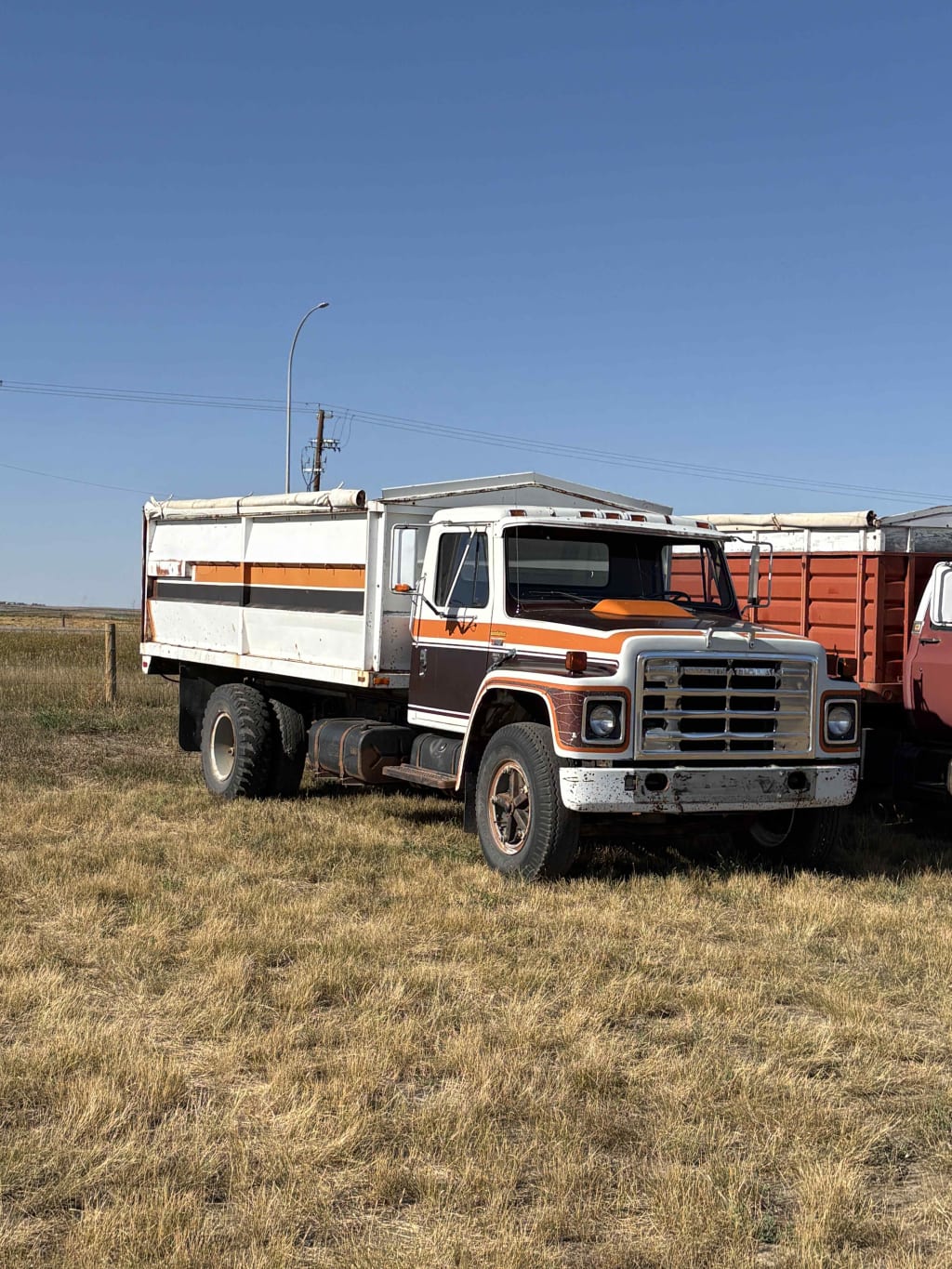1982 International 3 Ton, Manual 5 speed, Hi Low transmission, 2 speed dif, Gas Engine, ITB Box, Silage end gate, rear hydraulic, roll tarp, box size 16x8 1/2 wide, Vin # 1HTAA17B8CHB10241