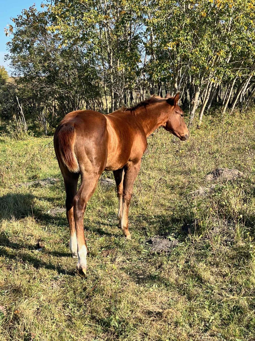 Take this guy to the roping pen! Super nice colt with a great pedigree, personality and conformation. His full brother went to be a futurity roper. You won't go wrong with this one!