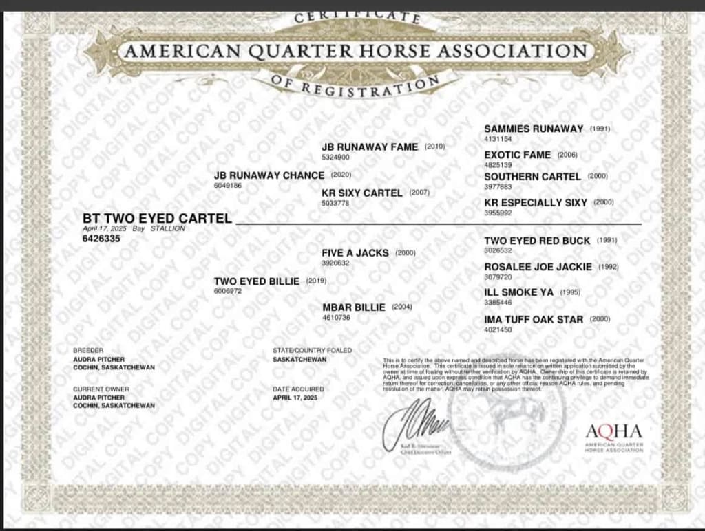 Beautiful big bay colt with stacked papers top and bottom. This guy has a great long stride that will get your across the arena in no time!