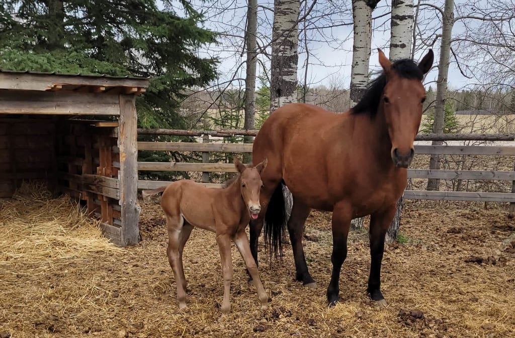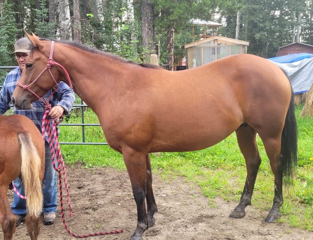 Biscuit has successfully raised 2 colts. Her training includes comprehensive groundwork, saddling, and she is good with feet. Noteably she has asserted herself as the dominant mare of the herd.