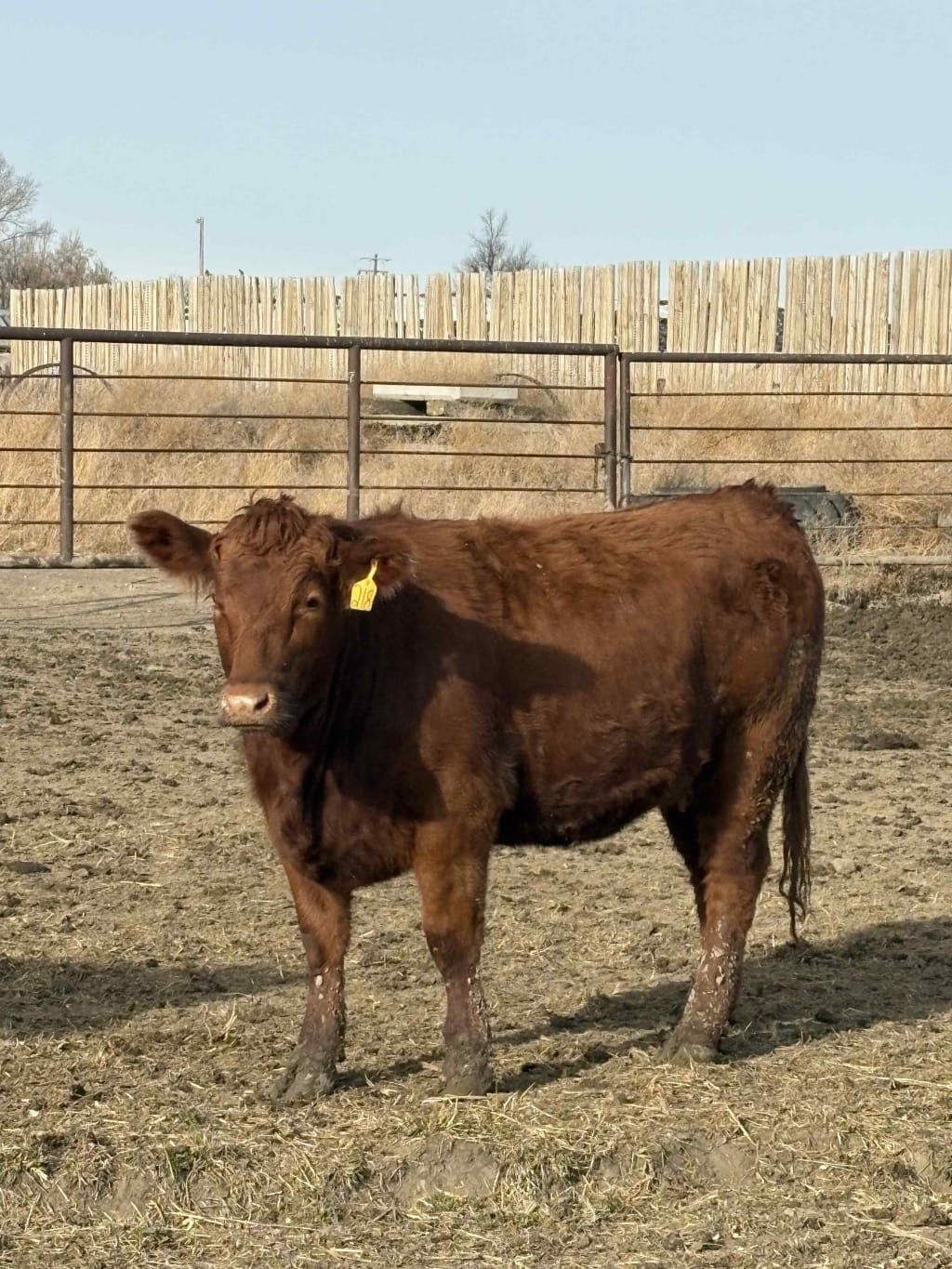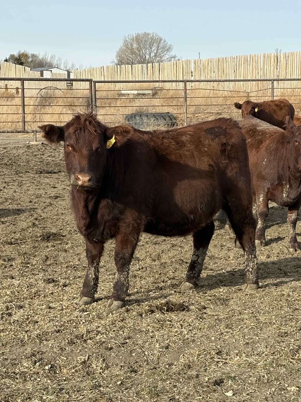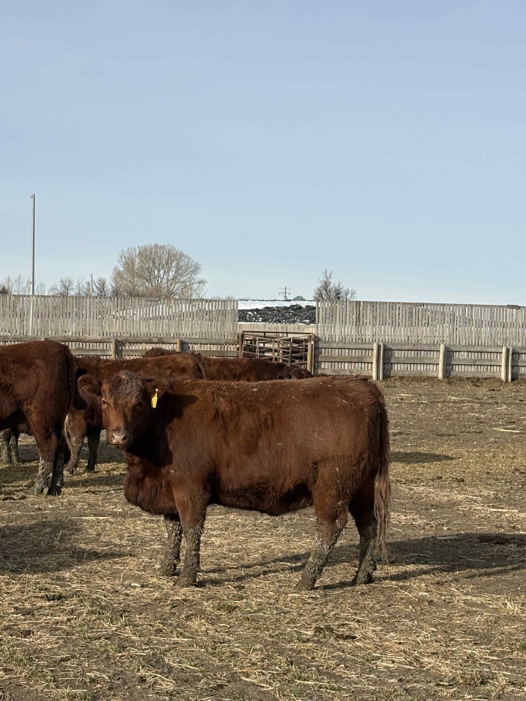 | Summary | SUNDOWN FARMS 457 Top-End Angus X Hfrs Consisting of: 125 Solid Red Hfrs 93 RBF, RNK, Red Blaze Face AI Bred May 10th to Proven Red Angus Hfr Bulls: Merlin 018A ; Calves are born small but exhibit excellent performance with impressive depth and thickness. AND New Decade 9341; A well-regarded Red Angus sire known for his easy of calving and balanced phenotype, deep red color, and easy-going temperament. 239 Red & RBF Hfrs Pasture Bred to Low birth wt easy calving Red Angus Bulls Bulls in June 9th. Out July 23rd |
