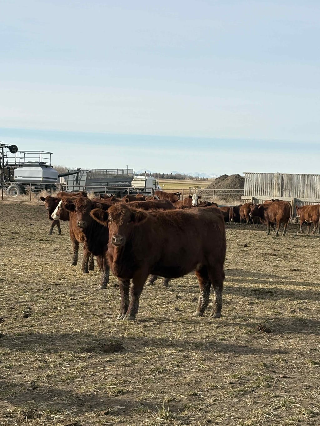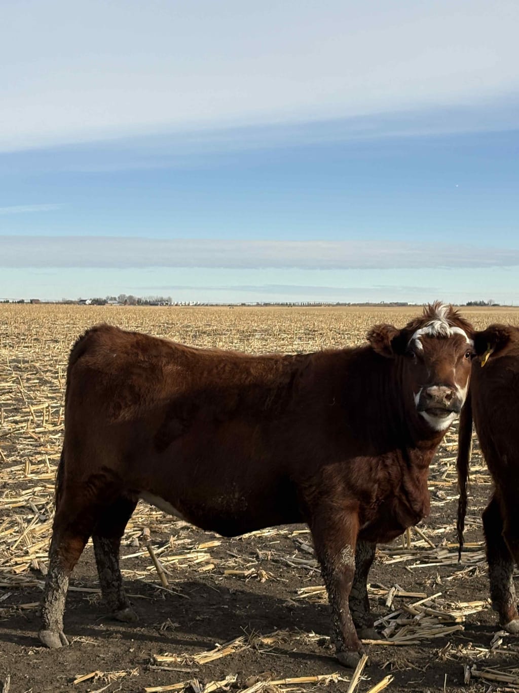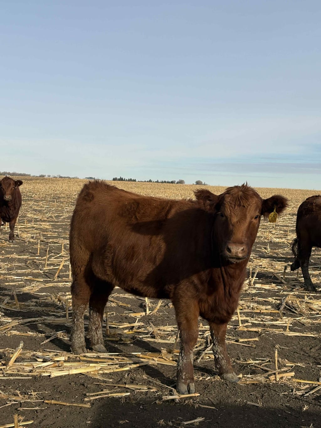 | Summary | SUNDOWN FARMS 457 Top-End Angus X Hfrs Consisting of: 125 Solid Red Hfrs 93 RBF, RNK, Red Blaze Face AI Bred May 10th to Proven Red Angus Hfr Bulls: Merlin 018A ; Calves are born small but exhibit excellent performance with impressive depth and thickness. AND New Decade 9341; A well-regarded Red Angus sire known for his easy of calving and balanced phenotype, deep red color, and easy-going temperament. 239 Red & RBF Hfrs Pasture Bred to Low birth wt easy calving Red Angus Bulls Bulls in June 9th. Out July 23rd |