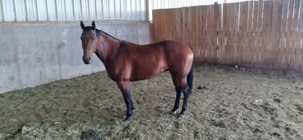 Murphy is an 8 year old solid bay gelding, 14.2hh. Very solid, has been ridden in the feedlot the last month. Would make an excellent partner for someone that has some ground to cover. Shows good cow sense. More suited for an experienced rider.