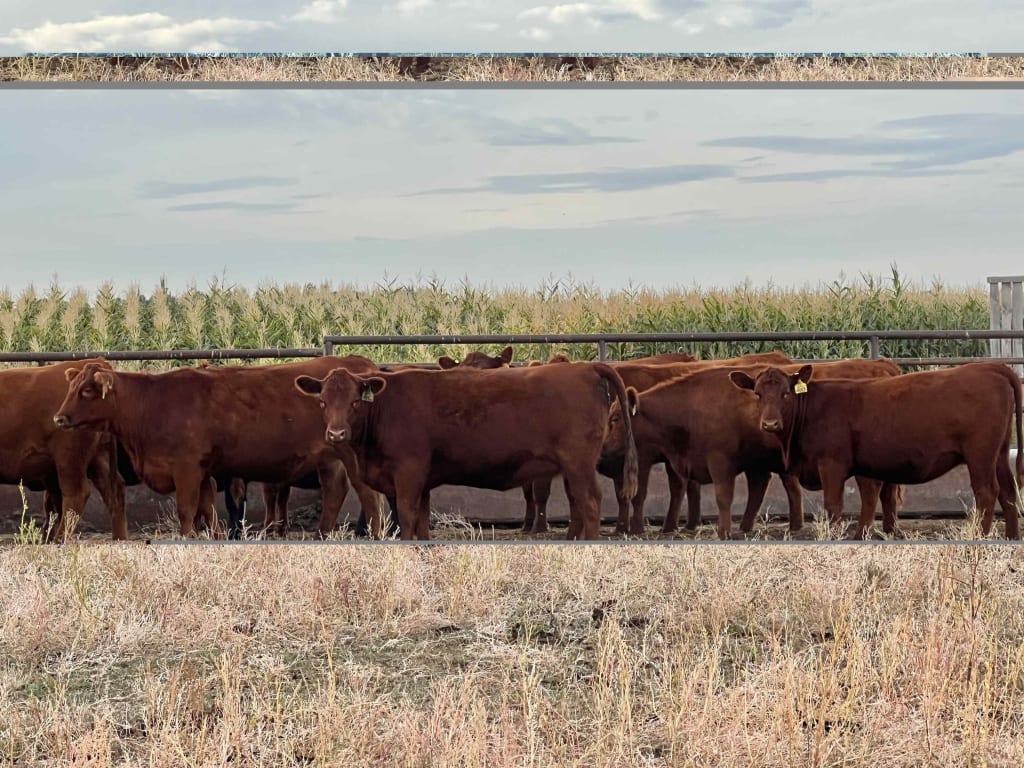 Summary | WATSON CATTLE CO 35 Fancy Red Angus and Red Angus X Gelbvieh Hfrs, Home Raised and One Iron Bred to low birth wt 71lb and 74lb Red Angus Bulls. Bulls in May 20th Out July 1st Note: 50% of this Herd is Red Angus & 50% is Red Angus with a1/4 to 1/8 Gelbvieh X Full Herd Health Program; Inforce 3 at birth, Bovi-shield Gold FP, Ultrabac 7 prior to breeding |
