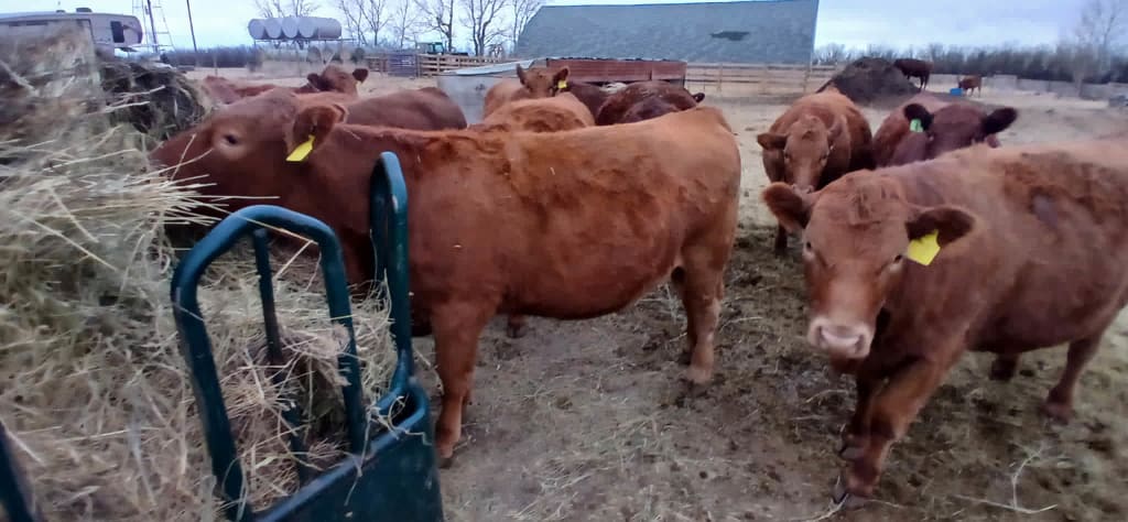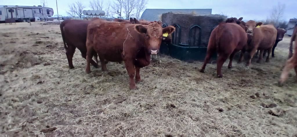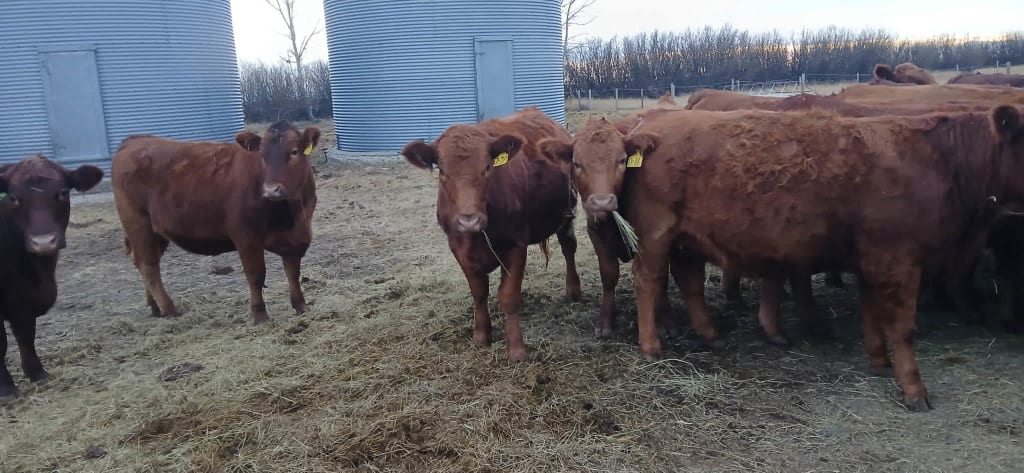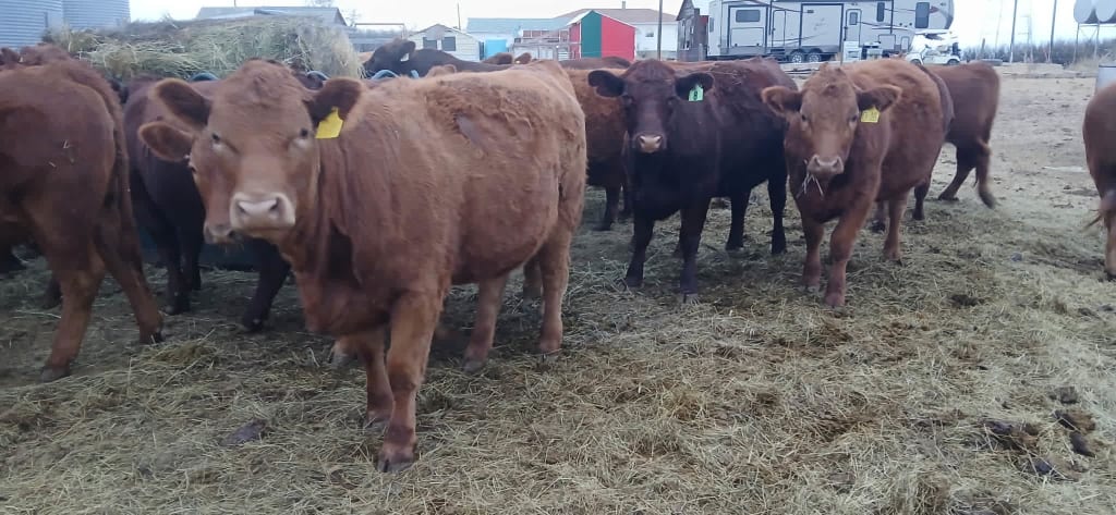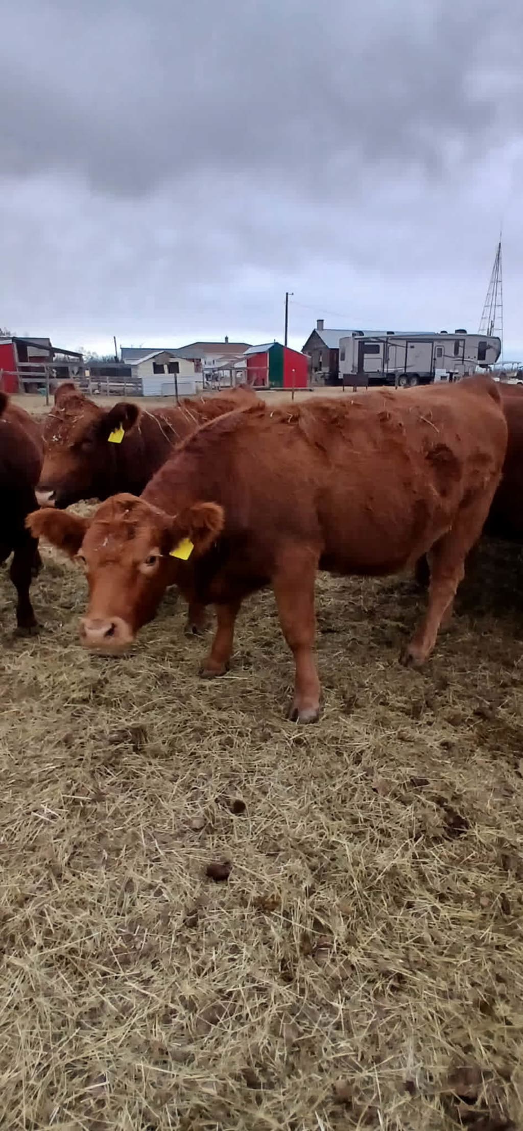 CORNY KLASSEN 15 Good Quality Red Angus Hfrs Bred to Red Angus Bulls Bulls in May 24th. Out Aug 6th