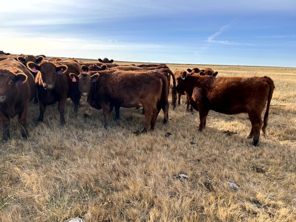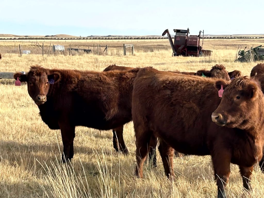 | Summary | KELSEY HELGESON 31 Excellent Red Angus X Red Simm Hfrs Bred to easy calving Red Angus Hfr Bulls. Bulls in Apr 23rd. Out June17th Due to Calve in Februray. Full Herd Health Program; Cattle Master Gold FP5, Guardian, Ultra Choice and Preg-tested on Oct 14th |