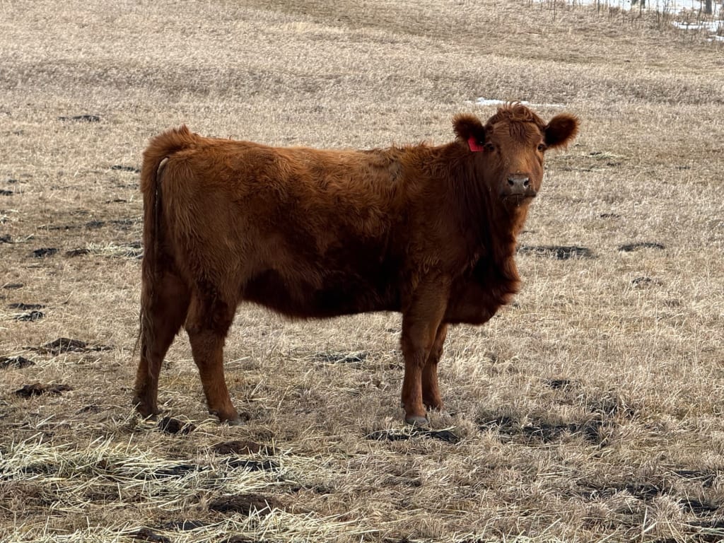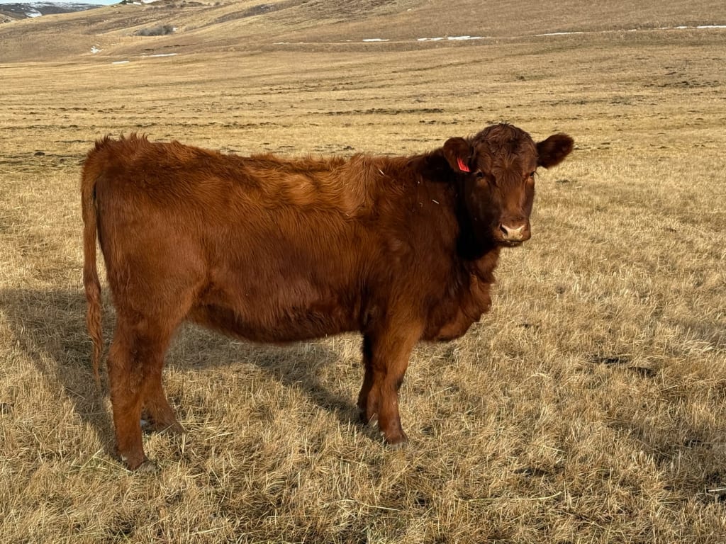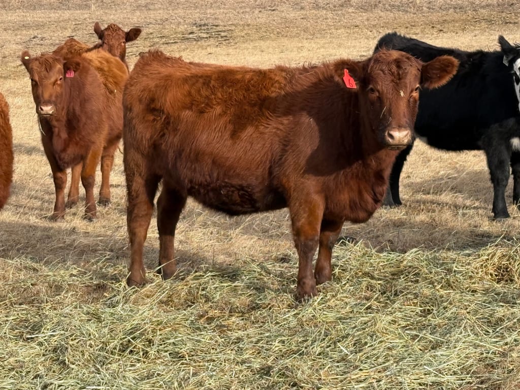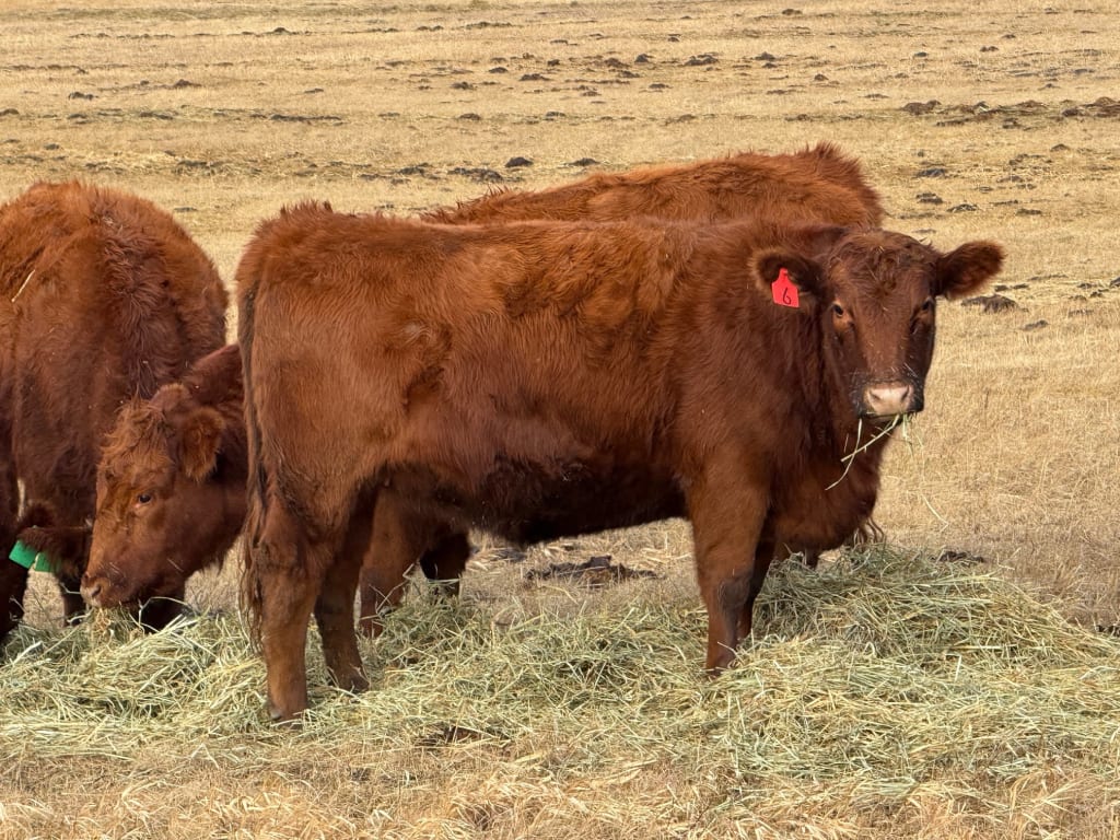| Summary | PETER & WENDY THOMPSON 10 Excellent NVB Red Hfrs From the Travis Duncan Ranch Bred to Benchmark Blk Angus Hfr Bulls Bulls in June 2nd. Out July 28th Full Herd Health Program; Vira Shield 6, 8way and Ivomec in Spring & Fall (Nov 5) Weight: 1050-1150 Note: All Hfrs were palpated prior to breeding and will be preg tested at the Market |