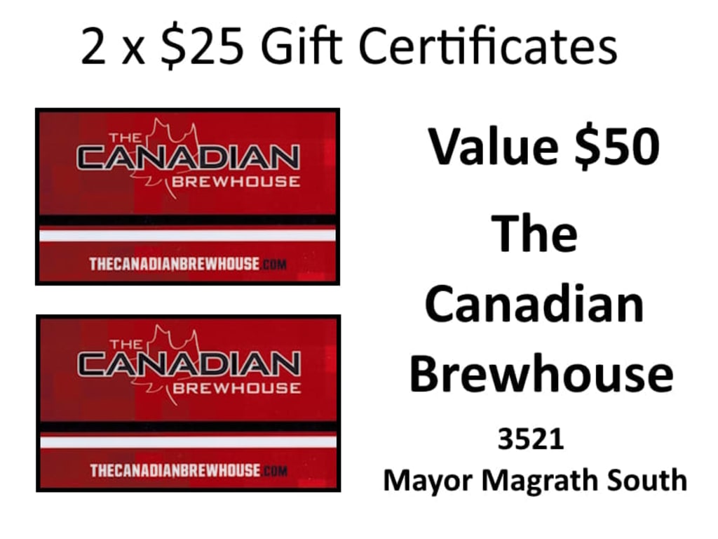 The Canadian Brewhouse 2 x $25 Gift Cards