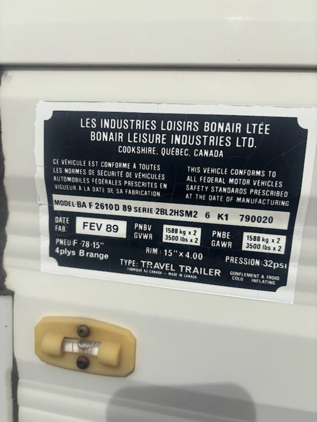 Awning, Fridge, Stove, Sink, 3pc Bathroom, Sleeps 4, ST225/75R15 Tires, SER: 2BL2HSM2