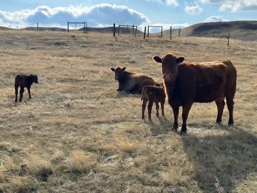 MEYER CATTLE INC. 15 Quality Red Angus Cow Calf Pairs 2nd & 3rd Calvers with Red Angus Calves at side Full Herd Health Program