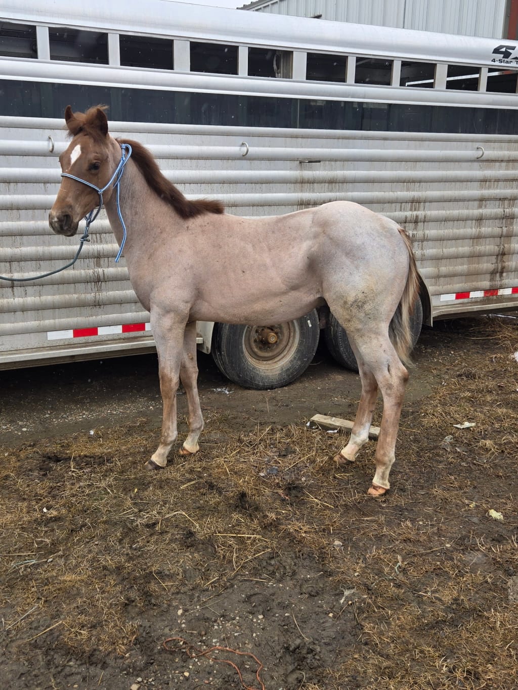 Very nice red roan colt that will be a go to type of gelding in the future. Well balanced and correct in everyway. He will mature big and stout.
