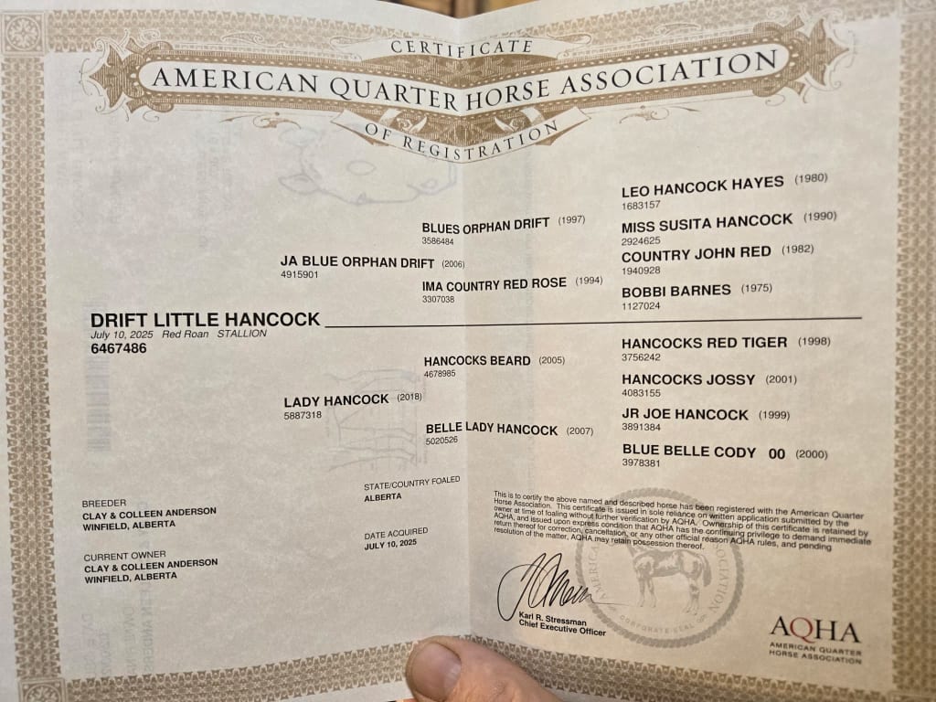 | Horse Name | DRIFT LITTLE HANCOCK |