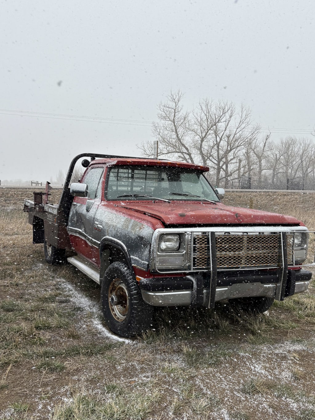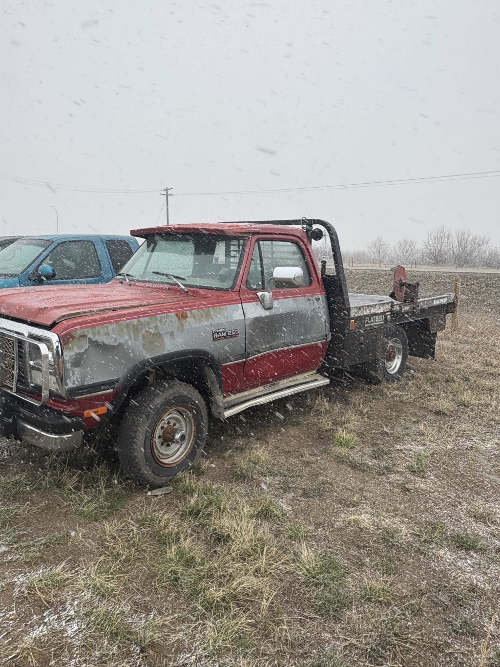 1991 Dodge 2500 4x4 Truck witha DEW EZE Bale Deck, 5 speed manual transmition, 12 valve, 263844km at listing, AM/FM Radio, Heat & AC, tire size 235/85R16, VIN 1B7KM26C1MS305530