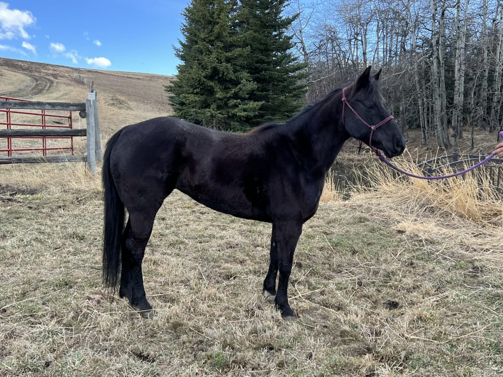 Black mare – 2020 Grade Mare Pretty, gritty, and full of go. 2020 grade mare with lots of travel and try. Well-built, eye-catching mare that’s been exposed to a little ranch roping and used sorting, moving, and trailing cattle. No buck. Has the motor and ability—just needs more seasoning. Best suited for an intermediate to experienced rider. Questions (403) 627-9333