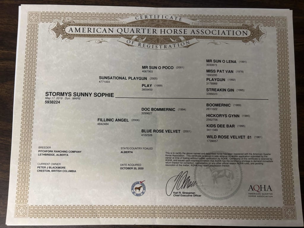 | Horse Name | STORMYS SUNNY SOPHIE |