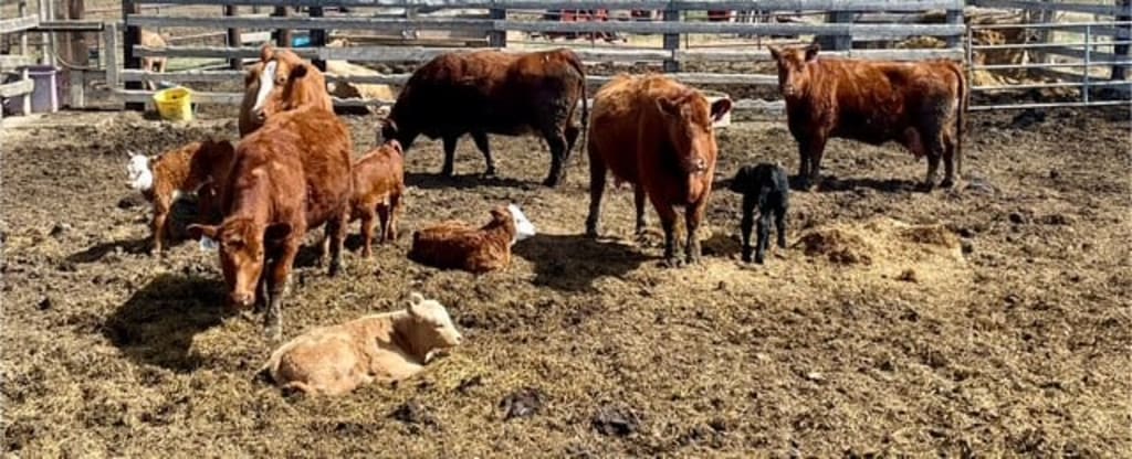 PATRICK STEED 6 Classy Cow Calf Pairs Consisting of: 5 Big Strong Mature Cows 2 Red, 1 RBF, 1 Tan, 1 First Calf Cow Red, Blk & Char Calves at side born in March/April